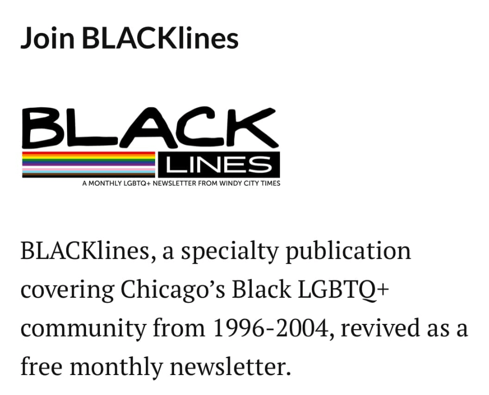 Subscribe to BLACKlinesWindy City Times announced that Anna is the first newsletter coordinator for BLACKlines! BLACKlines holds a unique place in Chicago’s journalistic history, and Anna is deeply honored to steward this vital publication for a new generation. It’s an incredible opportunity to amplify Black LGBTQ+ voices and stories at a time when they’re needed most.